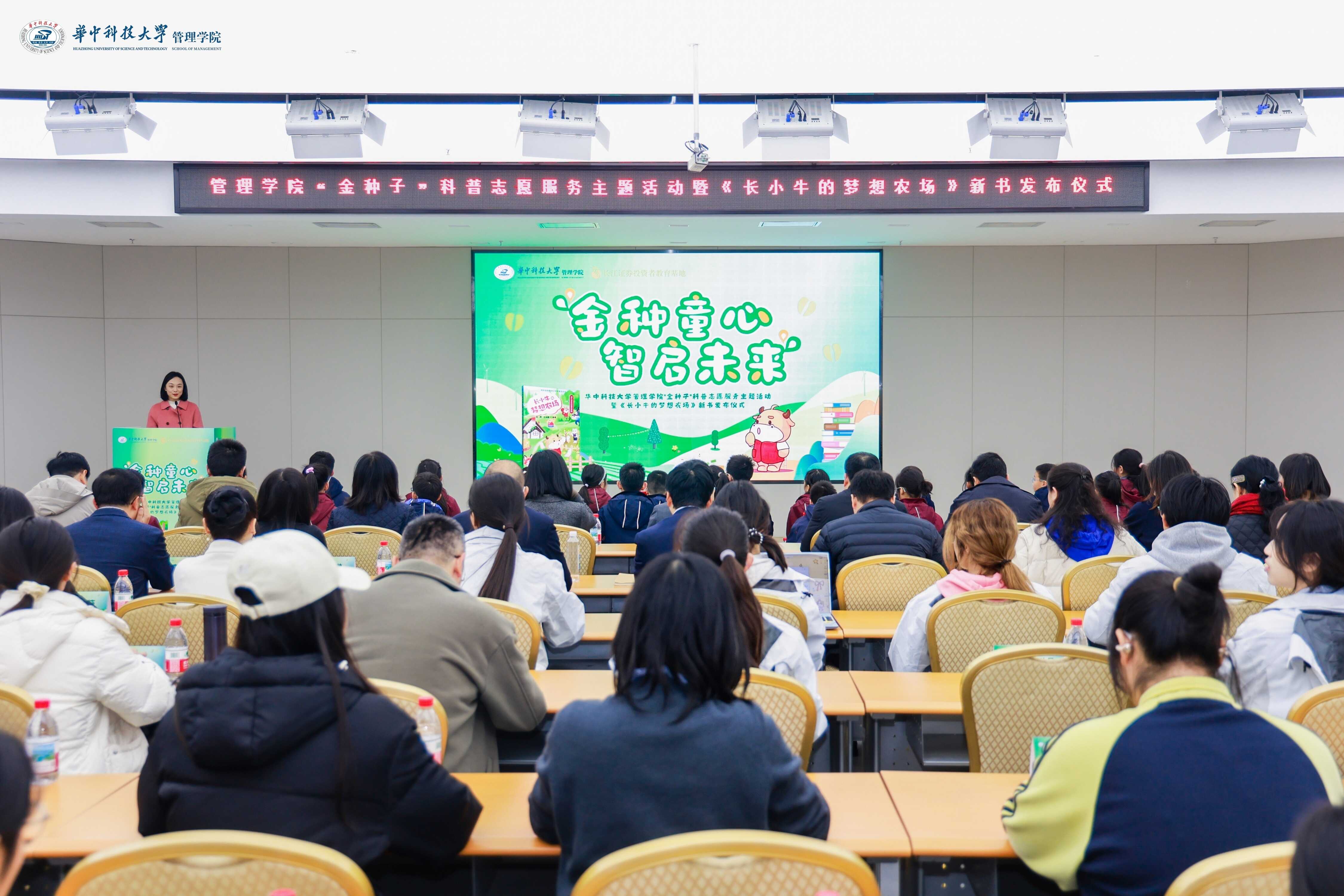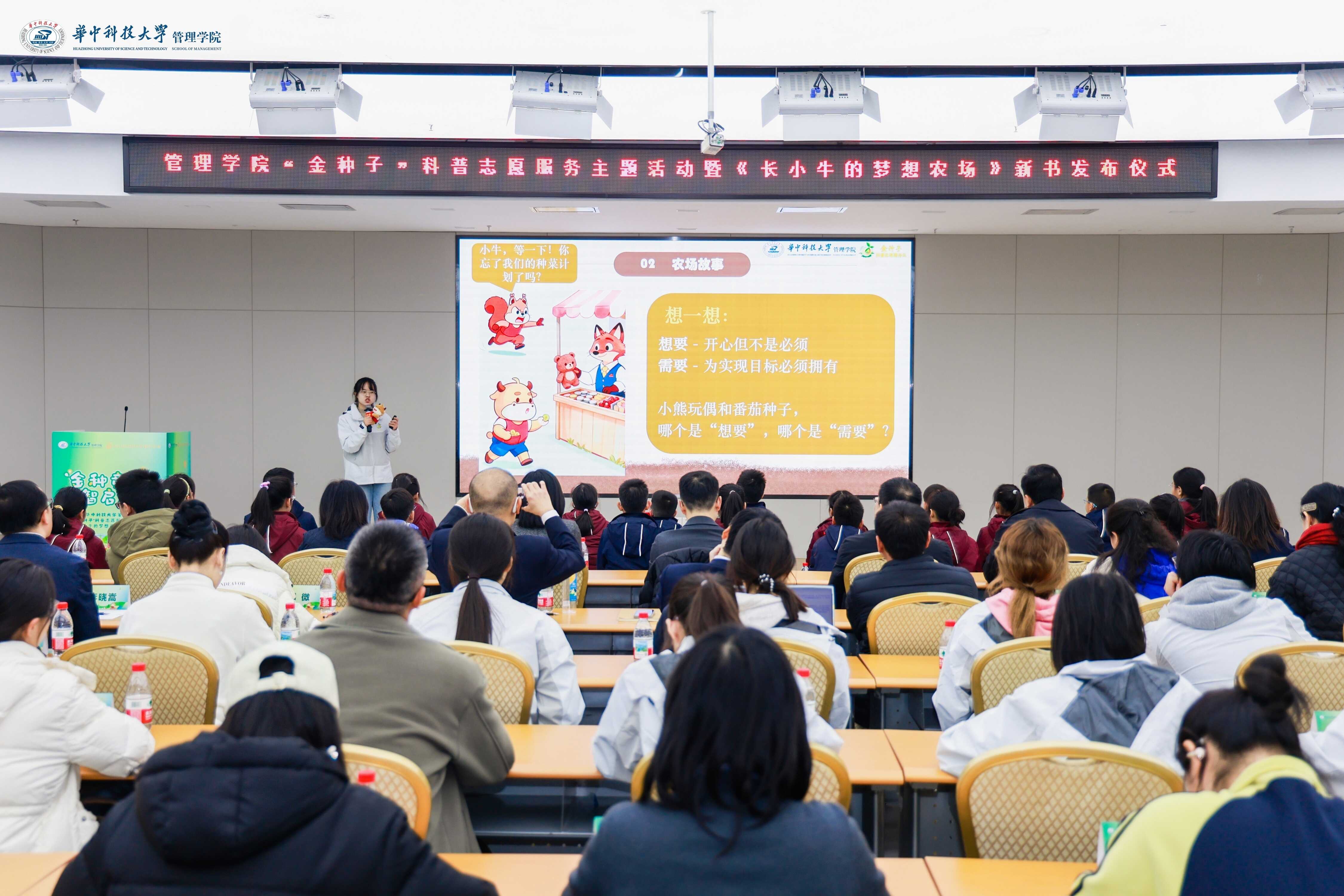 12月18日,华中科技大学管理学院“金种子”科普志愿服务主题活动暨《长小牛的梦想农场》新书发布仪式在华中科技大学管理学院206多功能厅举行。华中科技大学管理学院、附属小学、校团委、长江证券财富管理中心、西南财经大学出版社、湖北省社科联、湖北省证券期货业协会、湖北经济学院新财经交叉学科研究院相关负责人、“金种子”科普志愿服务队全体成员、华中科技大学附属小学学生代表参与本次活动。华中科技大学管理学院党委副书记杨柳主持本次活动。