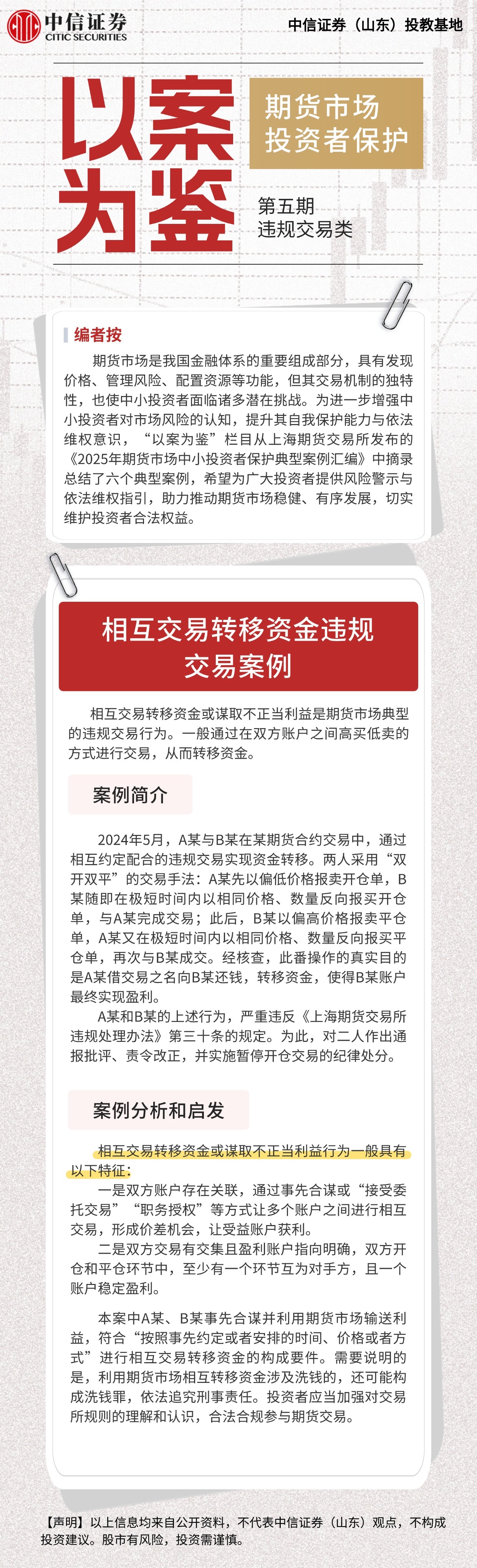 以案为鉴-期货投资者保护第五期(相互交易转移资金违规交易案例)