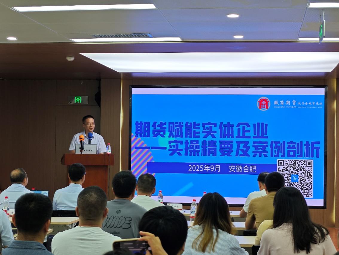 随着全球经济发展,越来越多的企业开始参与期货和衍生品市场进行风险管理,为了帮助企业更好地运用期货工具赋能企业,提升市场竞争力,2025年9月22日,正值金融教育宣传周之际,徽商期货投教基地成功举办了一场主题为“期货赋能实体企业——实操精要及案例剖析”的产业培训活动。此次活动吸引了众多实体企业代表的积极参与,线上线下近800余人。