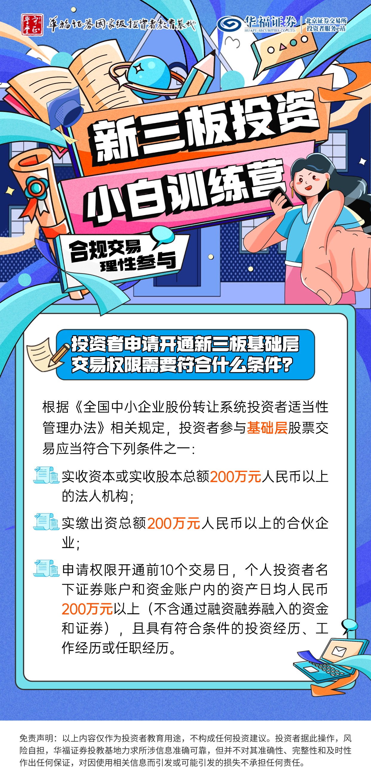 新三板投资小白训练营:投资者申请开通新三板基础层交易权限需要符合什么条件?