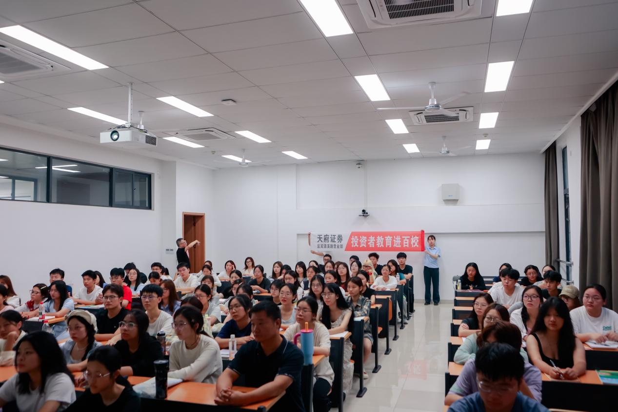 2025年9月11日,宜宾清溪路营业部携手天府证券红庙子街投资者教育基地走进四川轻化工大学(李白河校区),开展“投资者教育进百校”主题投教活动。此次活动紧密围绕2025金融教育宣传、网络安全宣传以及中国公平竞争政策宣传三大主题展开。共邀请了110余位在校学生参与。
