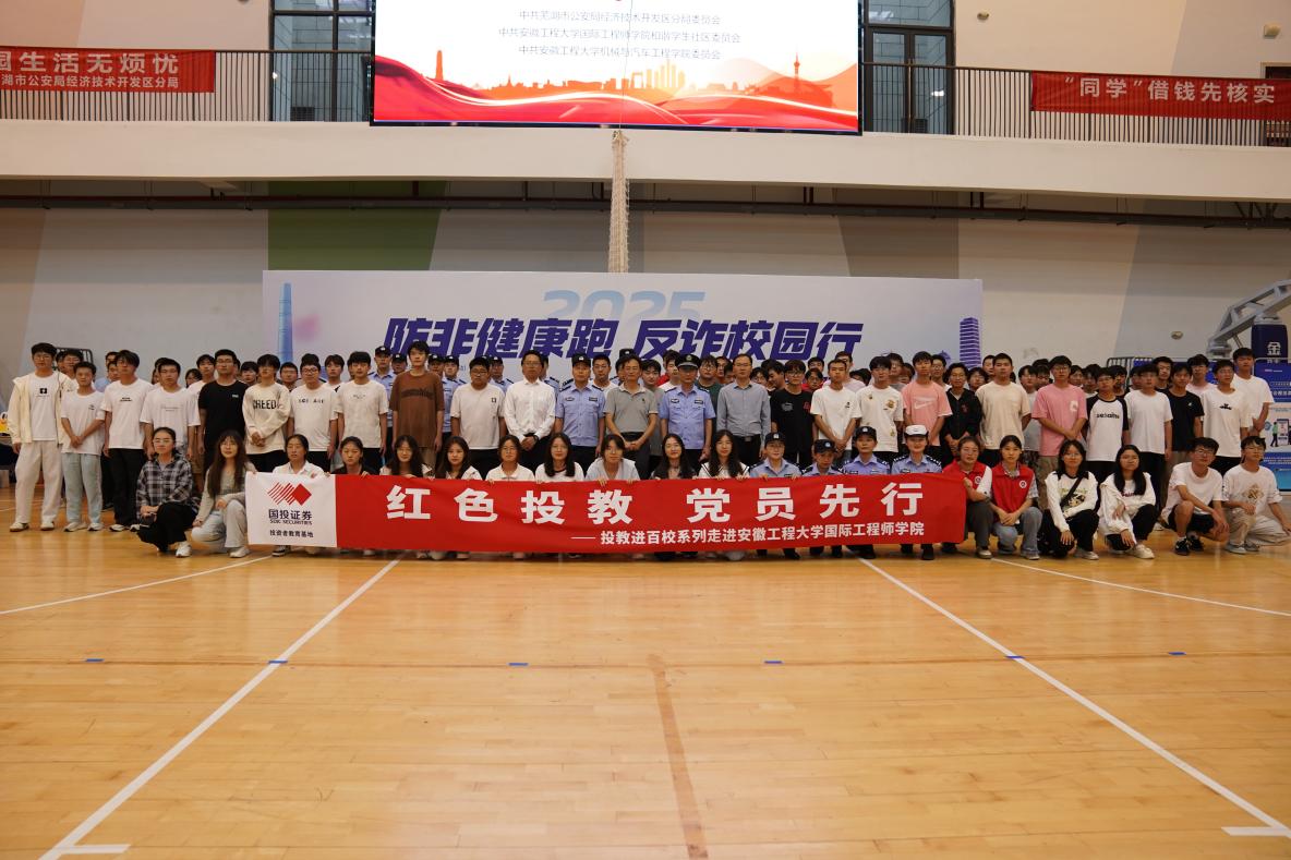 2025年9月24日,为积极响应中国证券业协会“投教进百校”号召,以“防非健康跑”活动为契机,在芜湖市公安局经开分局主办下,国投证券投教基地(以下简称“投教基地”)联合共青团芜湖市委员会、共青团芜湖经济技术开发区工作委员会、安徽工程大学国际工程师学院校区管委会、安徽工程大学机械与汽车工程学院开展“防非健康跑 反诈校园行”——暨经开区反诈卫士校园挑战赛。本次活动以国投证券“红色投教 党员先行”品牌为载体,旨在将全民健身与防非防诈相结合,为保护投资者合法权益、塑造健康的行业文化贡献力量,通过此次“警校企”三方聚力织密安全网,携手为高校学子共筑“青春防护墙”,共吸引140名学生参加。