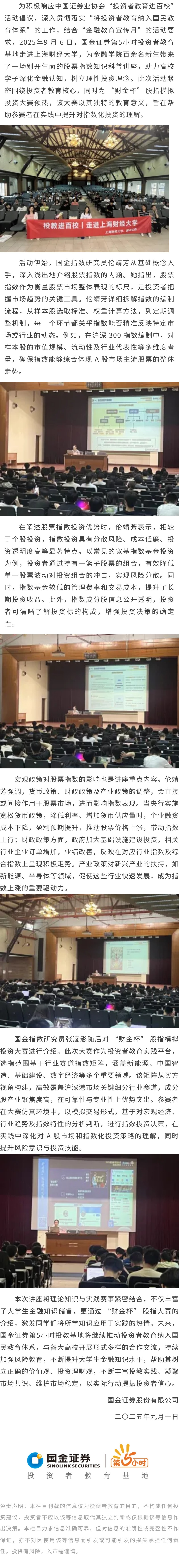 投教进百校∣国金证券走进上海财经大学 普及指数知识 筑牢投教根基