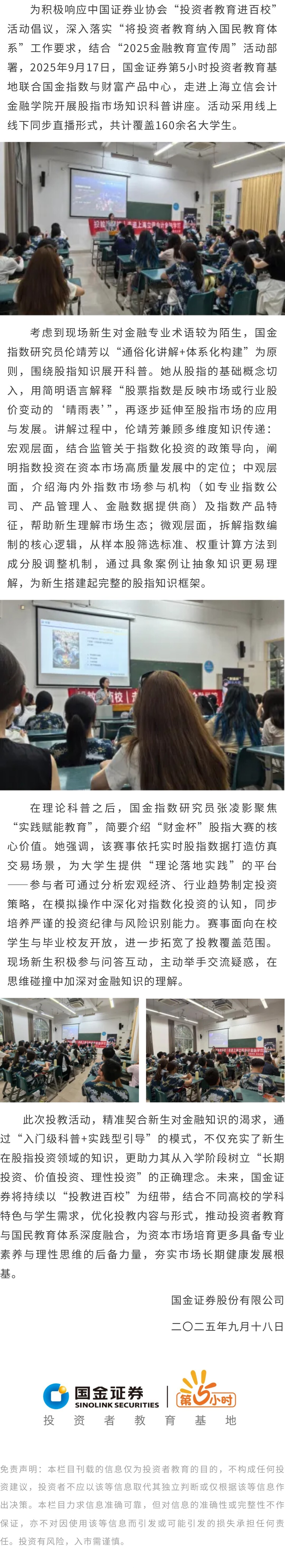 投教进百校∣走进上海立信会计金融学院 科普股指知识 培育新生理性投资思维