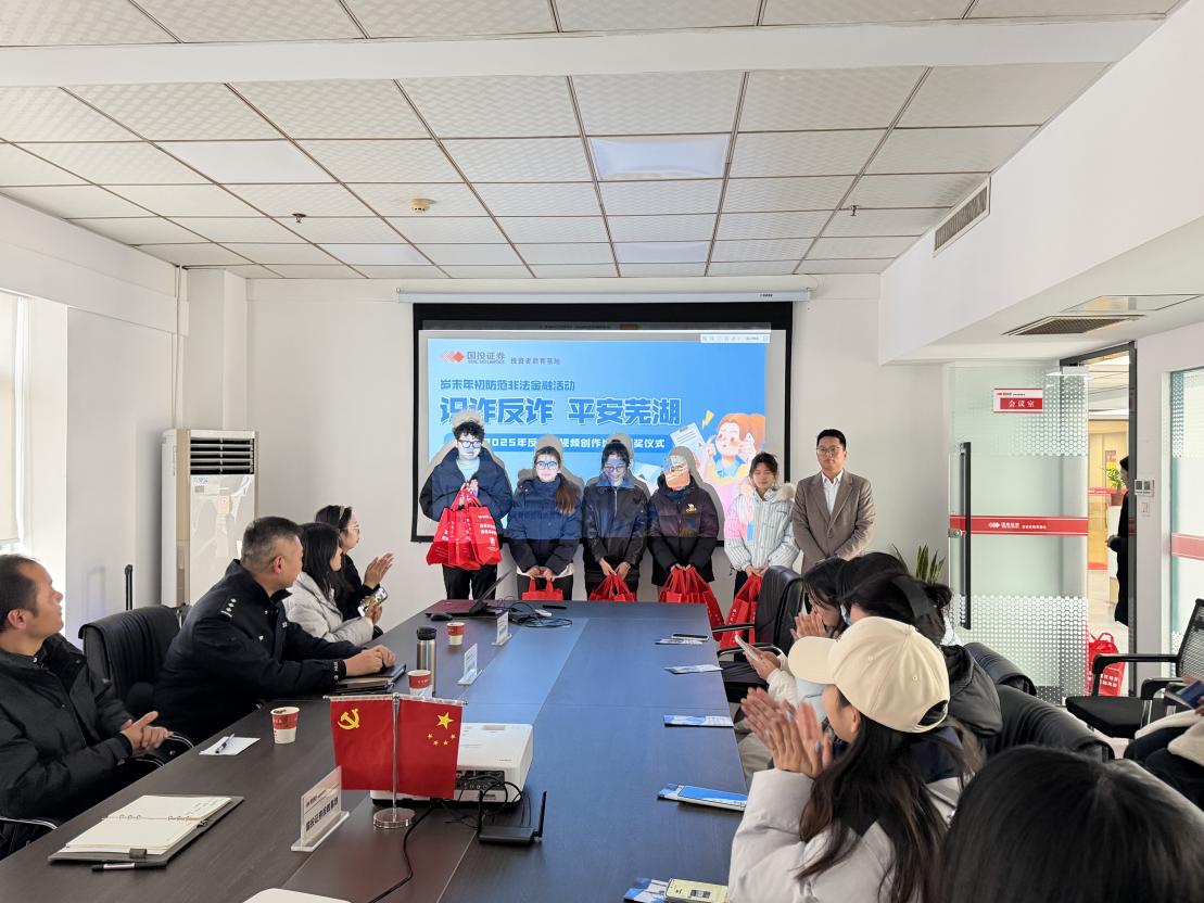 为深入贯彻国家关于打击治理电信网络诈骗犯罪的决策部署,积极响应“全民反诈”号召,持续深化投资者教育与金融风险防范工作,正值“岁末年初防范非法金融活动”专项之际,2026年1月5日,国投证券投教基地联合中共芜湖市镜湖区委宣传部、镜湖区公安局、安徽工程大学开展“识诈反诈 平安芜湖”反诈宣讲暨2025年反电诈视频创作比赛颁奖仪式。