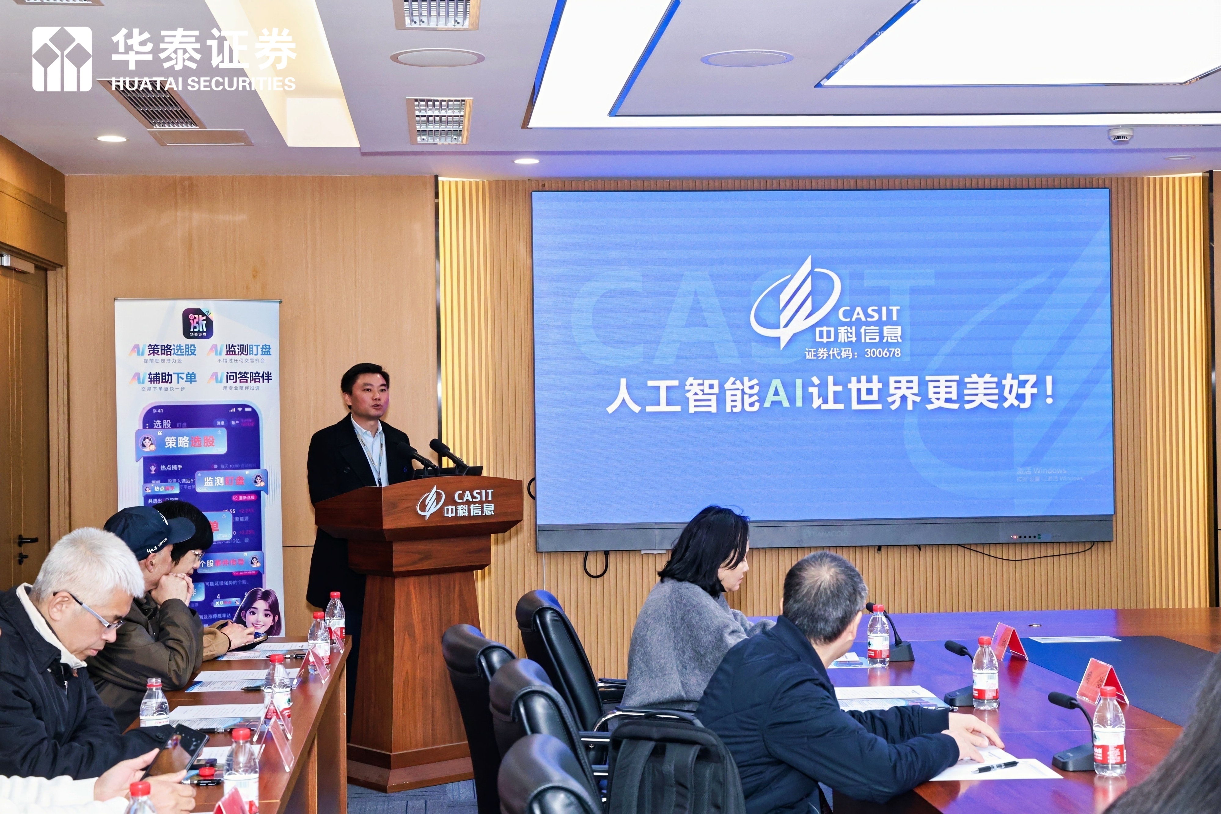 上午,华泰证券携投资者一行到访中科信息,公司董事会秘书刘小兵、董事会办公室主任兼证券事务代表吴琳琳全程陪同接待。在吴琳琳的引领下,投资者参观了中科信息品牌体验馆,近距离了解公司以高速机器视觉与智能分析为核心的AI技术体系,以及其在机器视觉上下游产业链的国产化布局成果,直观感受AI技术在智慧制造、智慧医疗、智慧城市等领域的落地应用场景。