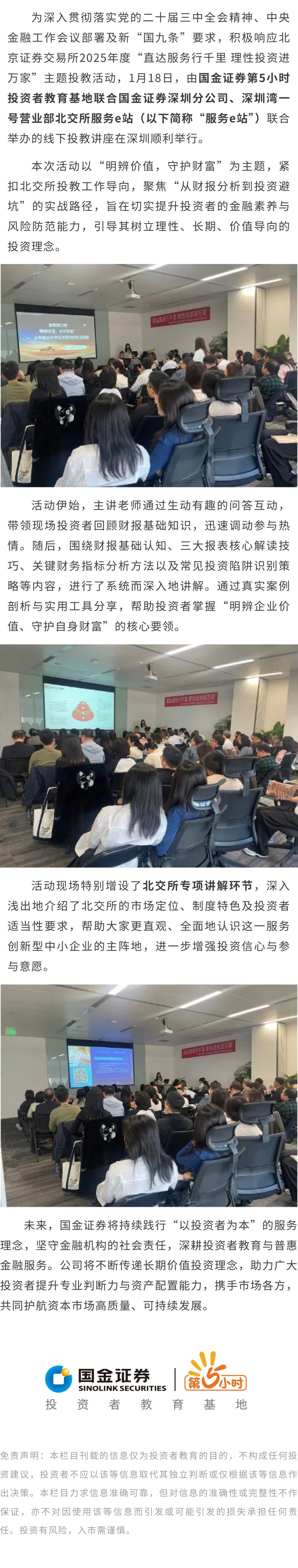 直达服务行千里 理性投资进万家∣国金证券深圳专场投教讲座圆满举办