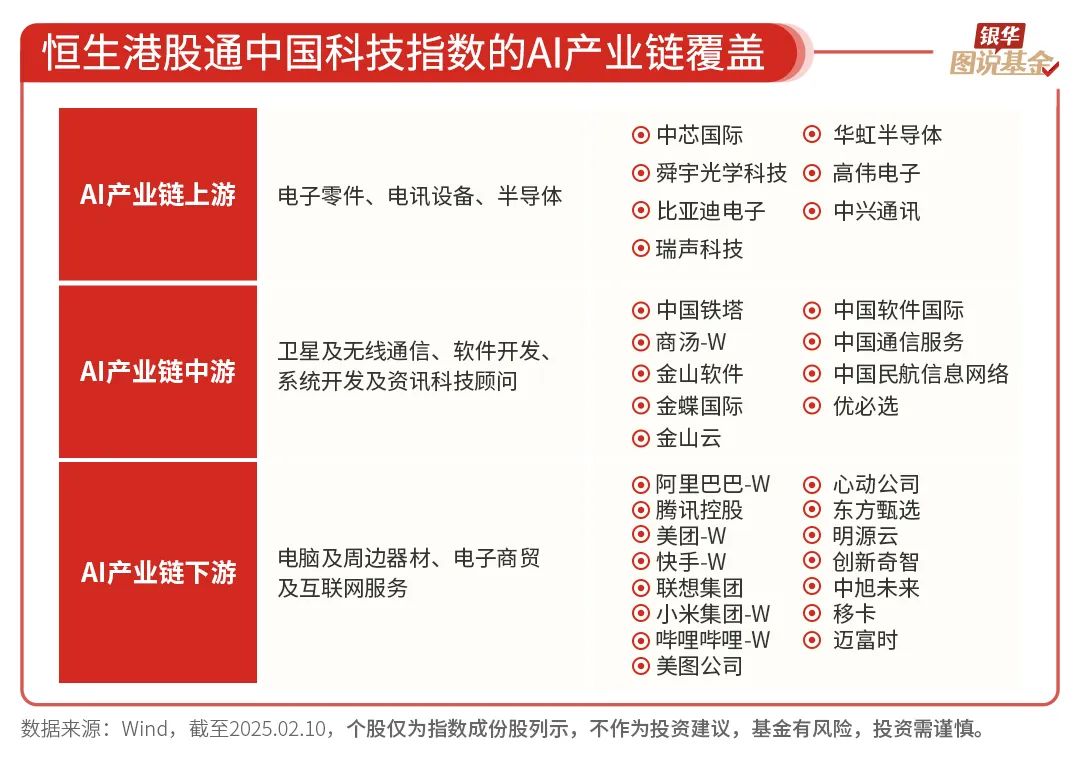 5、从成份股所属产业链上看,恒生港股通中国科技指数成份股聚集港股AI产业链,对AI产业链上中下游进行了全面覆盖。
