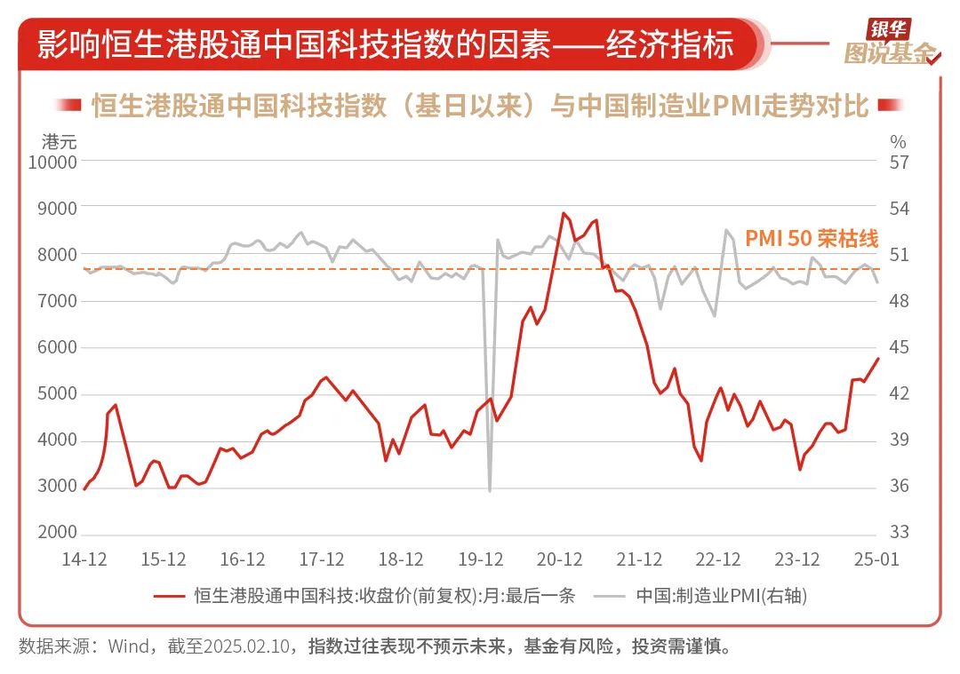 9、恒生港股通中国科技指数包含的企业业务高度依赖内地市场,收入主要来自中国内地的消费、企业服务和政府需求,内地经济的表现直接影响其盈利能力和增长前景。从历史数据来看,恒生港股通中国科技指数的基本面与内地经济高度同步,与制造业PMI同步变动。