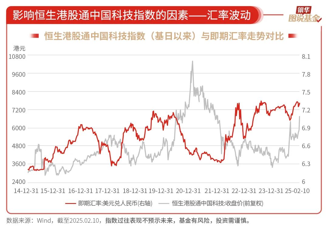 10、从历史数据来看,恒生港股通中国科技指数和人民币汇率具有较强的相关性。短期原因来看,由于港元挂钩美元,在港上市内地企业的人民币收入相对美元和港元升值或贬值,会影响其港股价格。长期影响来看,人民币汇率走强反映内地经济和企业盈利前景改善,有望进一步支持其港股股票上涨。