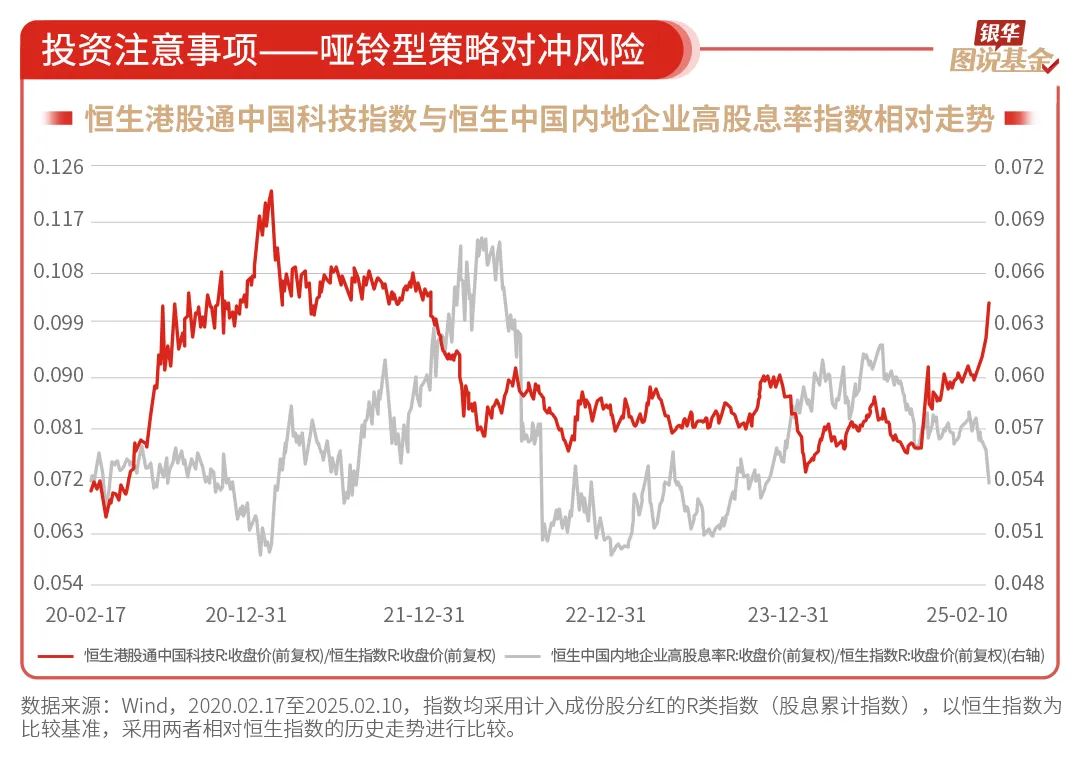 15、恒生港股通中国科技指数弹性更大,偏向进取性,与价值红利类资产走势常呈现负相关。在不确定的市场环境中,采用同时关注科技与红利的哑铃型策略,可在安全垫基础上兼顾科技成长板块的结构性机遇,从而力争更好抵御风险、提升投资体验。
